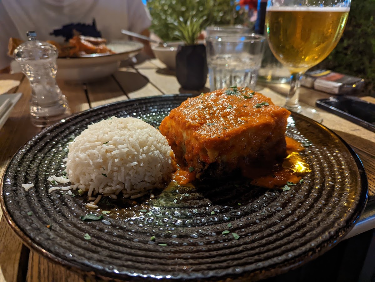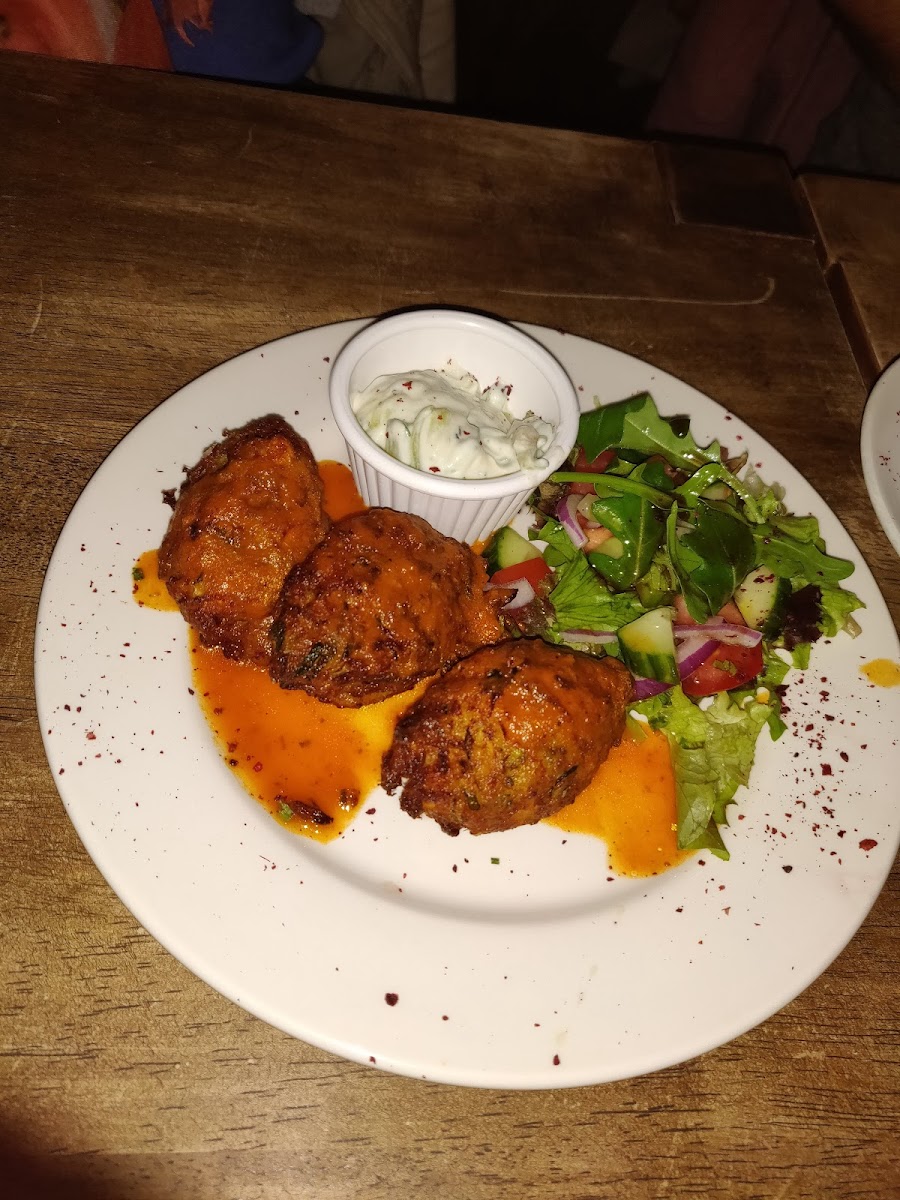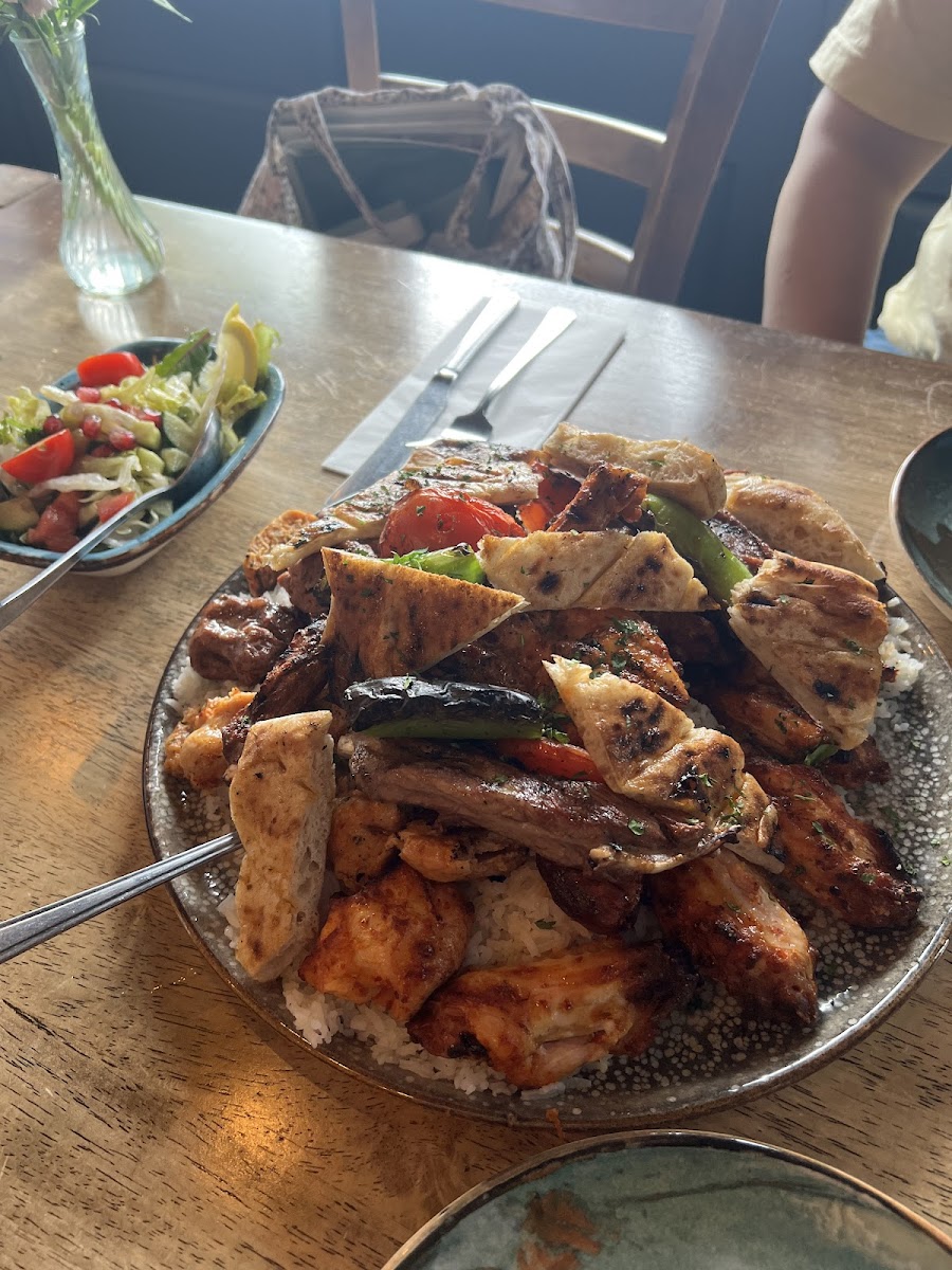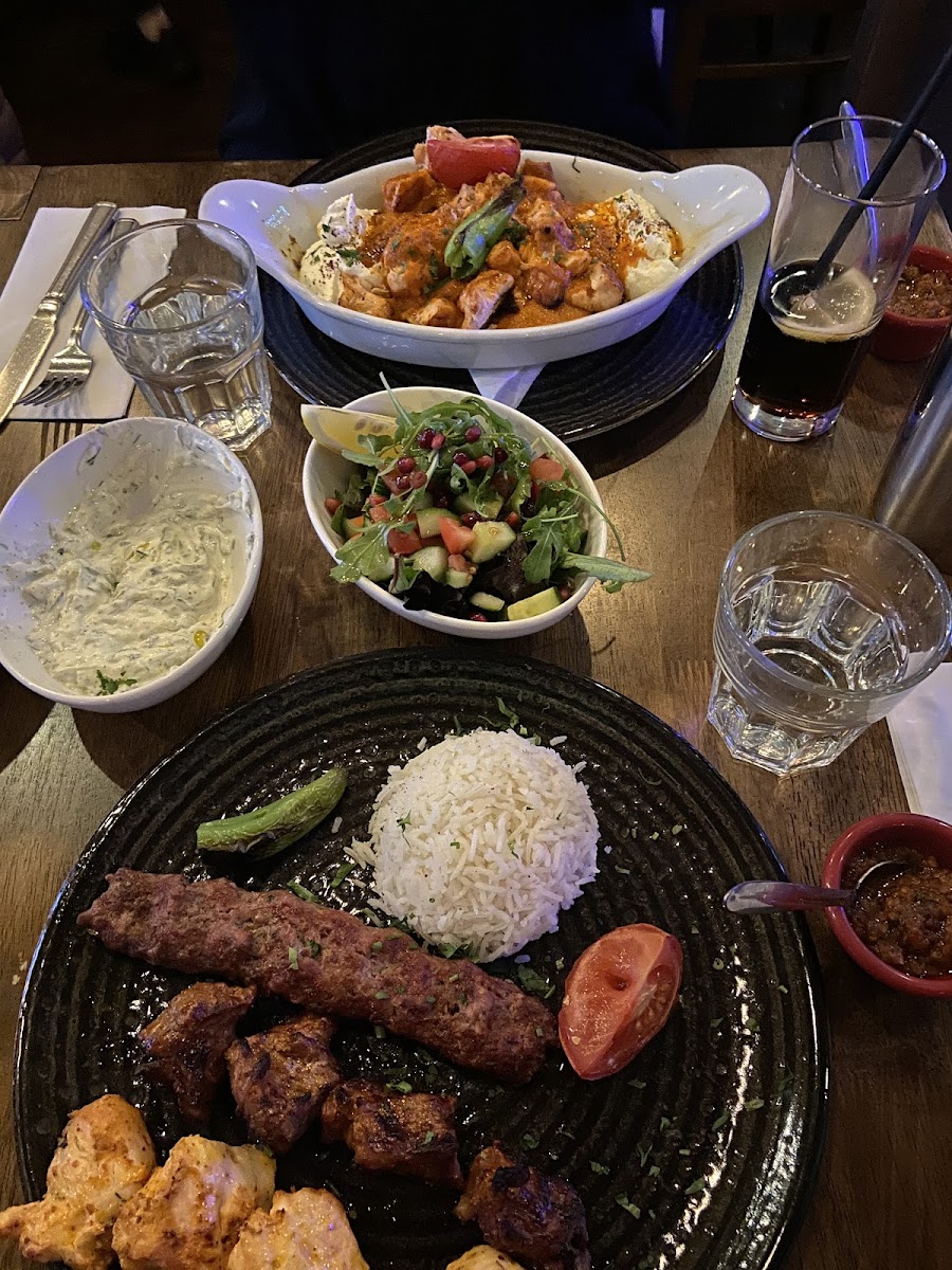 This is a really nice place to eat. The cold mezze starter for two was delicious, generous and fresh. The lamb ribs were simply some of the nicest things I have ever eaten. Plump, moist, and beautifully seasoned. Truly remarkable. Great salad and bread and my friend’s calamari were nice and big and again, plump! Highly recommended.